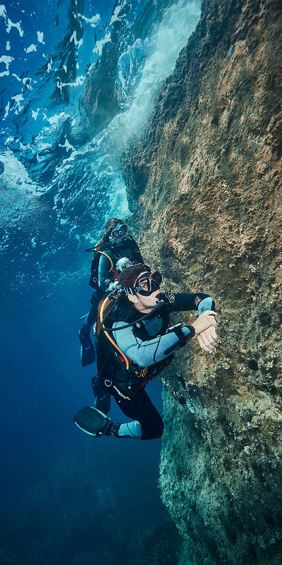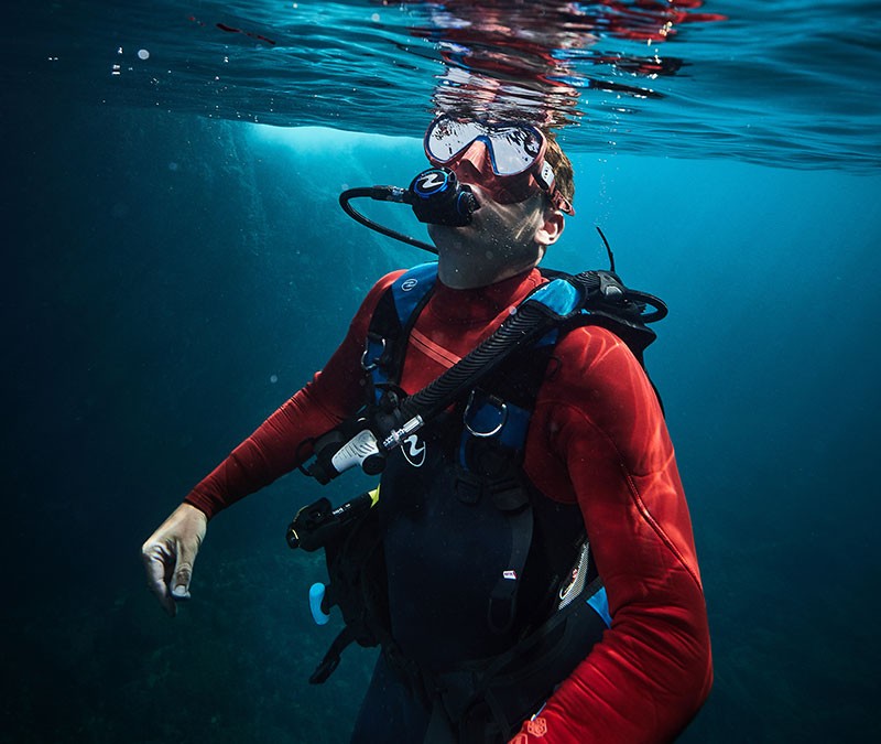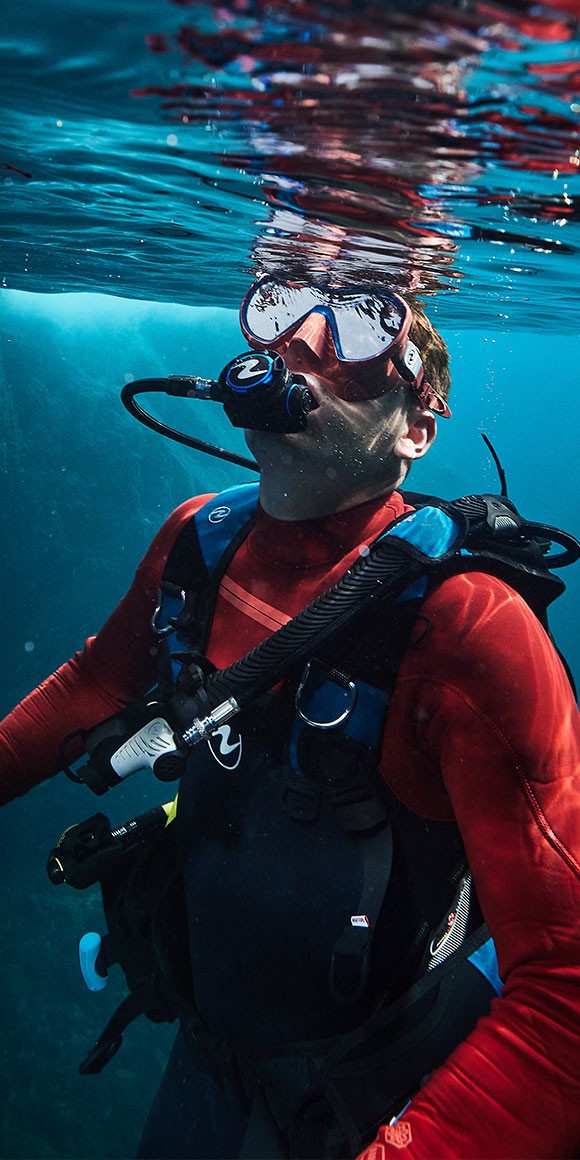 The ultra-thin harness secures the BCD flush against the body to prevent it riding up in the water. The tanks weight is distributed evenly as the harness holds it closer to your centre of gravity, allowing you to stand and walk around with ease.